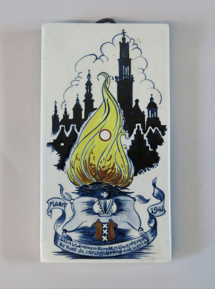 - Wandtegel ter herinnering aan de 'oorlogsbrand' in Amsterdam, maart 1941, 1950 - 1974