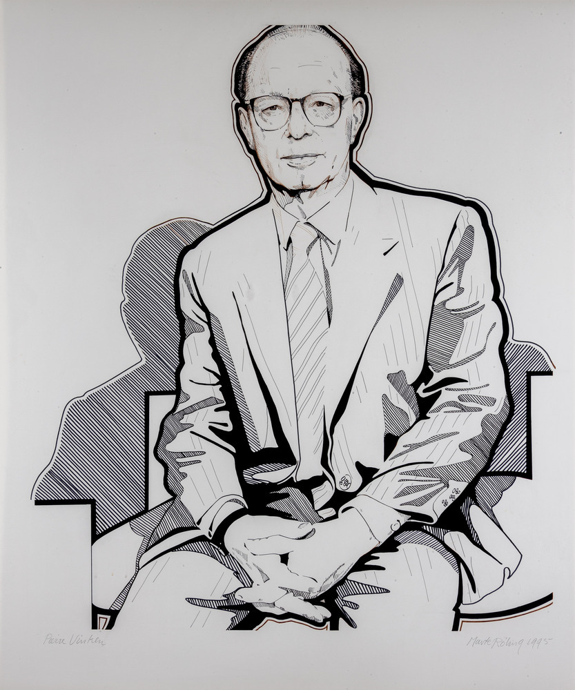 Pierre Vinken (1927-2011) was van 1981 tot 1995 chairman van Reed Elsevier. Elsevier is in 1880 opgericht als uitgeversmaatschappij. De naam is afkomstig van het Zuid-Nederlandse uitgeversgeslacht Elzevier, dat van eind zestiende tot eind achttiende eeuw actief was. Elsevier startte met het uitgeven van Multatuli’s Max Havelaar en de Winkler Prins Encyclopedie. Tot 1940 bleef Elsevier een klein familiebedrijf. Na de Tweede Wereldoorlog is Elsevier dankzij fusies, overnames en samenwerkingen met andere uitgeverijen en vooraanstaande wetenschappers uitgegroeid tot een internationale uitgever van multimedia op het gebied van educatie, wetenschap en gezondheidszorg. Elsevier heeft kantoren over de hele wereld. Dit portret hangt in het Nederlandse hoofdkantoor van Elsevier aan de Radarweg 29 te Amsterdam. ( Sarah Remmerts de Vries)