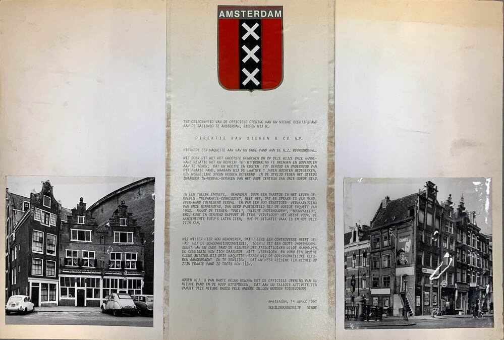 - Gelukwens en foto's, bij maquette van pand Sieben & Co. aan Nieuwezijds Voorburgwal 27, 1967