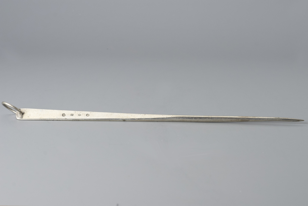Kleine vleesspies uiteinde vlak gesmeed met ophangring, gebruikt voor klein gevogelte.- Trefwoorden