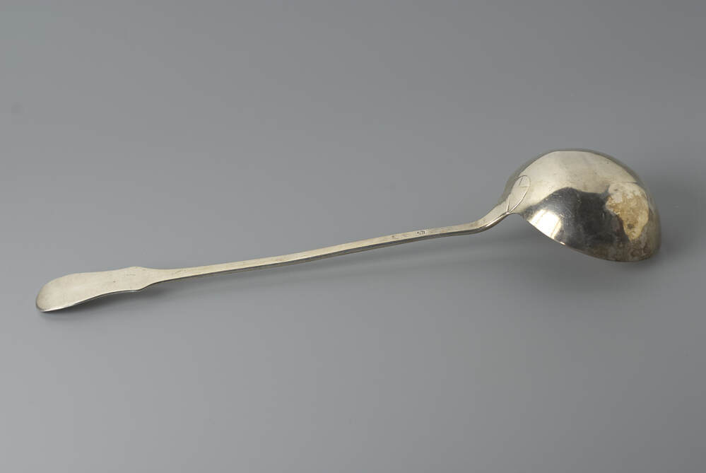 Bolvormige bak met rechte stel, enkel lof met een dubbele v versiering, uiteinde met midde ribbe spatelvormige kop.- Trefwoorden