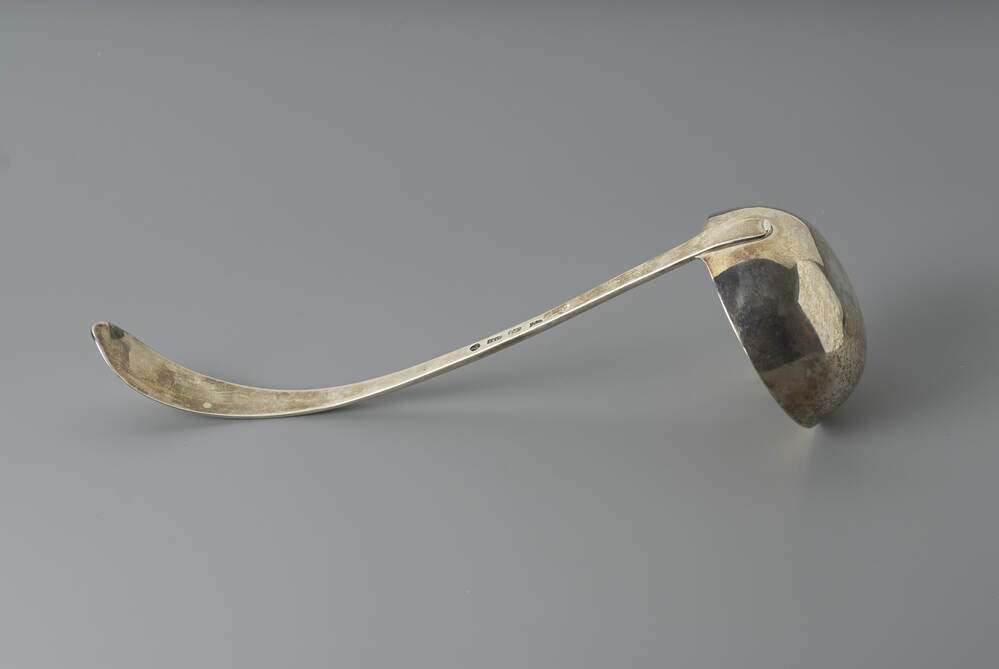 Ronde, gladde komvormige bak, aangezette gladde steel f-vormig gebogen en breed uitlopend.- Trefwoorden