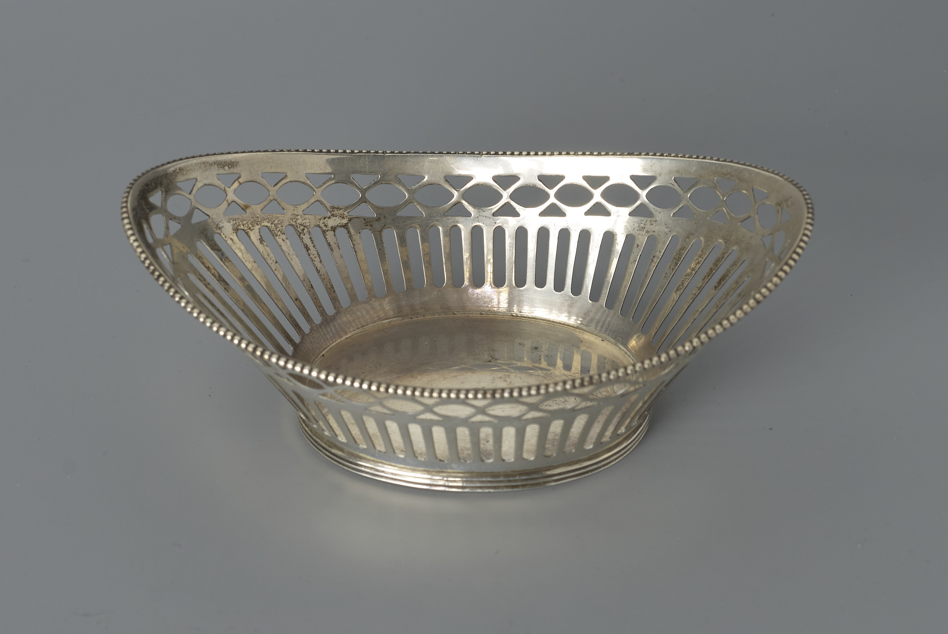 Spits ovaal mandje de wand ajour-gezaagd.- Trefwoorden