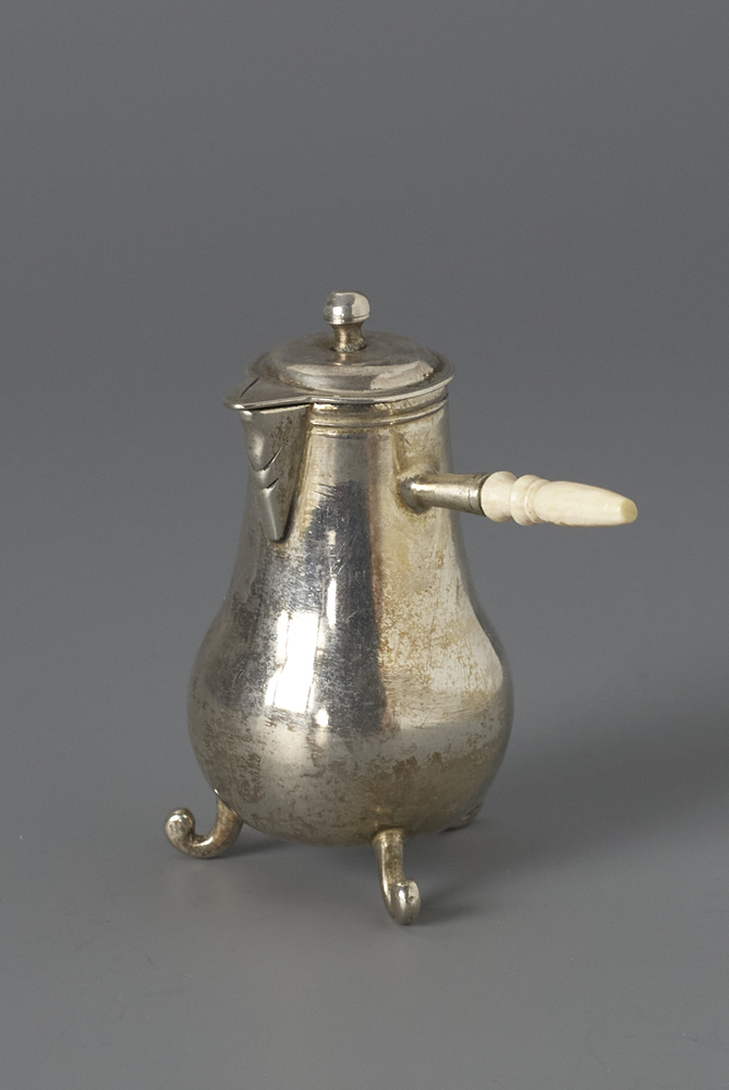 Koffiekan met snabtuit en haaks op elkaar staanden tuit en (later) oor.