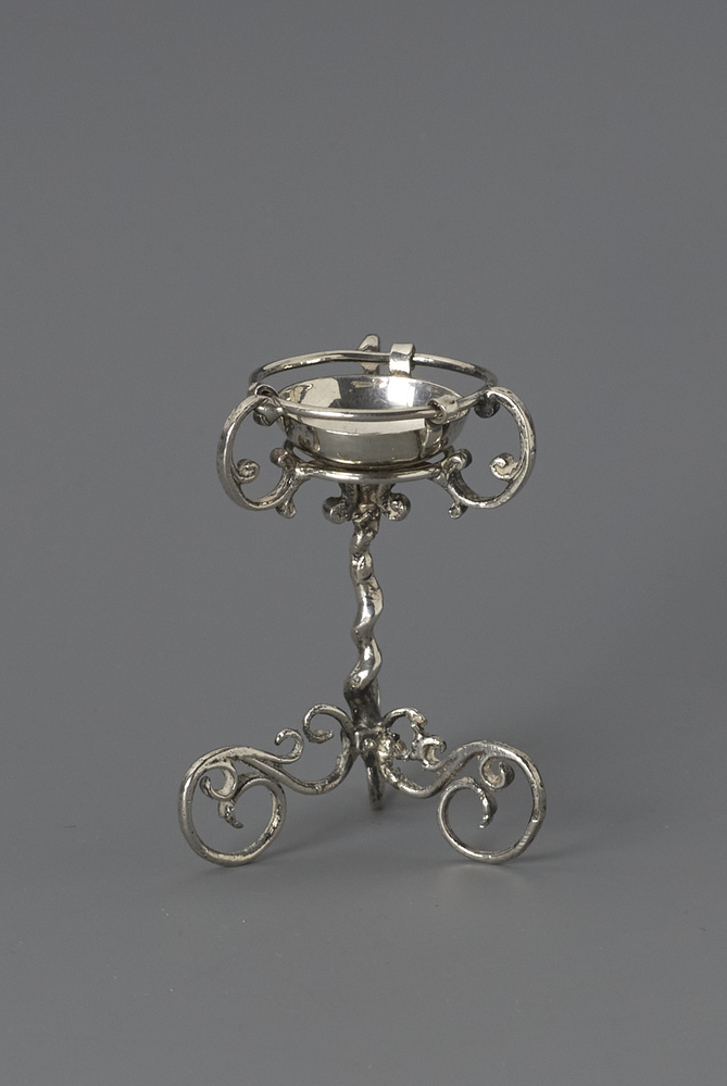 Komfoor op hoge driepoot met gedraaide stam en draaibare binnenbak- Trefwoorden