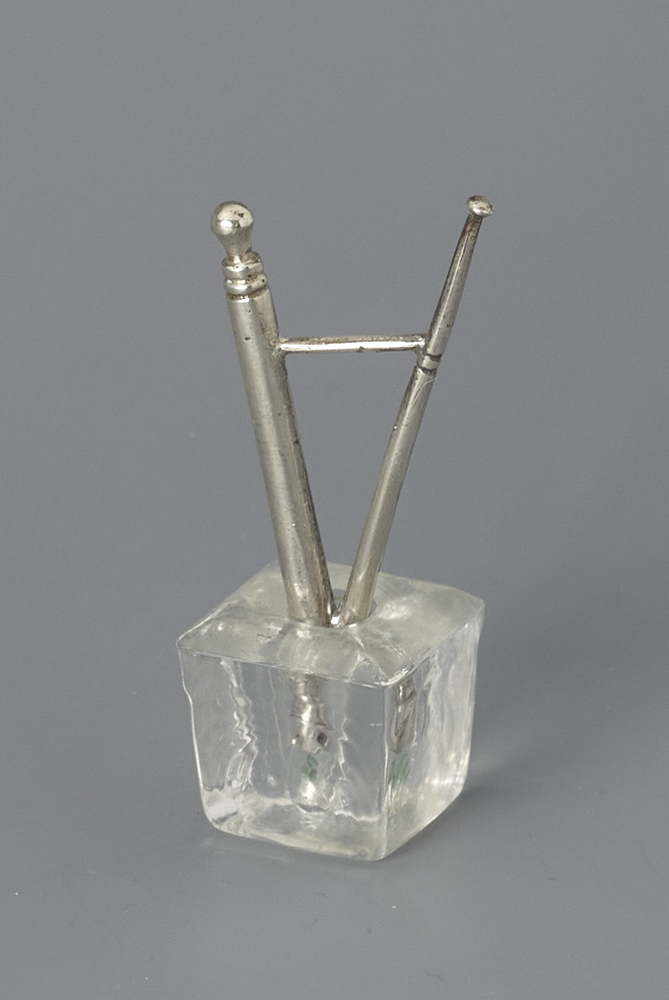 De glazenspuit bestaat uit een V-vormige steel met bovenaan een knopje.- Trefwoorden