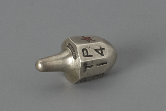 "Players ante into a pot and take turns spinning the top. Any number of players may play. If the top lands with T1 showing (or “take one”), T2 or T3, the player who spun it would win (take) 1, 2 or 3 chips, respectively, from the pot. If it landed with the star or “Take All” showing, he would take all the chips from the pot. If it landed P1 (or “put one”), P2 or P3, he would lose (put) 1, 2 or 3 of his chips, respectively, into the pot. If it landed “0” or “Put All” or “All Put,” each player would contribute one chip to the pot. The top would pass to the next player after each spin. (There are many rule variations. For example, “Put All” could mean that the spinner matches the pot!)"