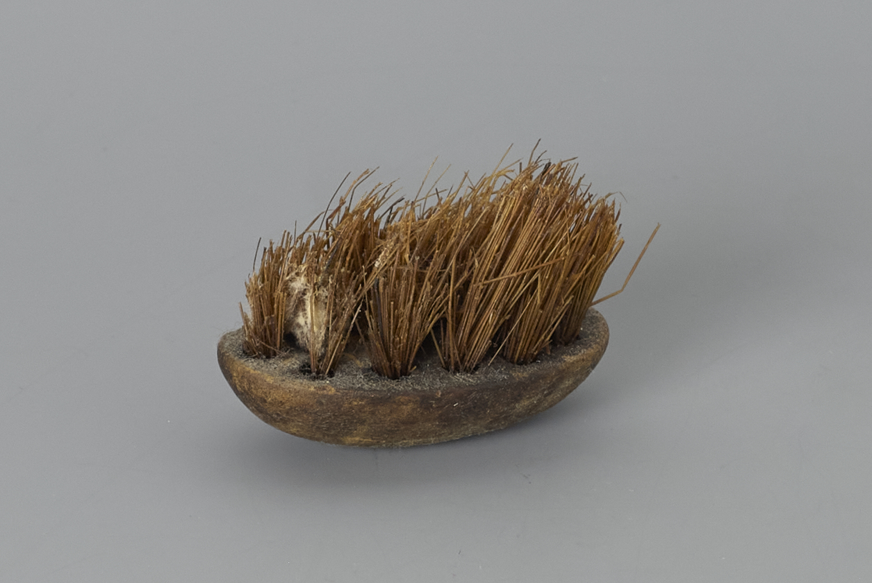 Ovale houten borstelrug zonder de zilveren rugplaat.- Trefwoorden