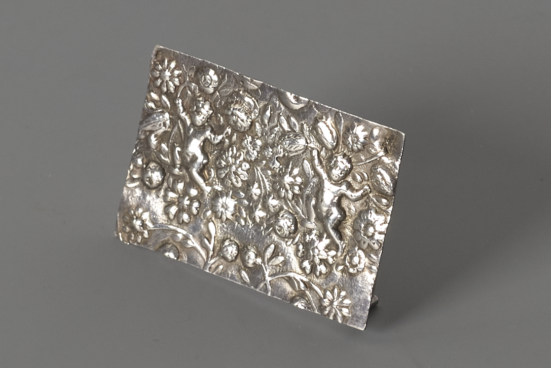 Rechthoekig fragment versier met putti en bloemen, kan mogelijk gebruikt zijn als haardscherm in een poppenhuis- Trefwoorden