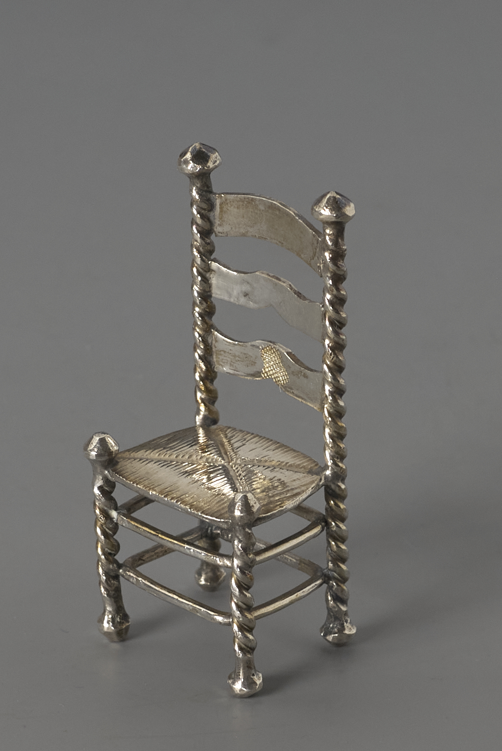 Knopstoel met getortse poten en biezenzitting.- Trefwoorden