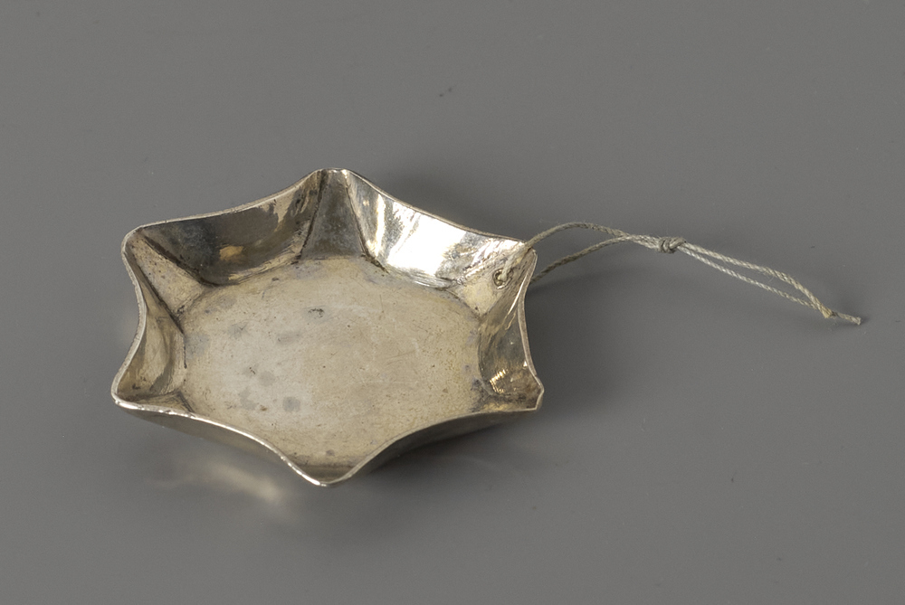 meesterteken onderzijde: Voor de helft aanwezig teken; Een rond(?) contour met een figuur erin. - schenking 2020