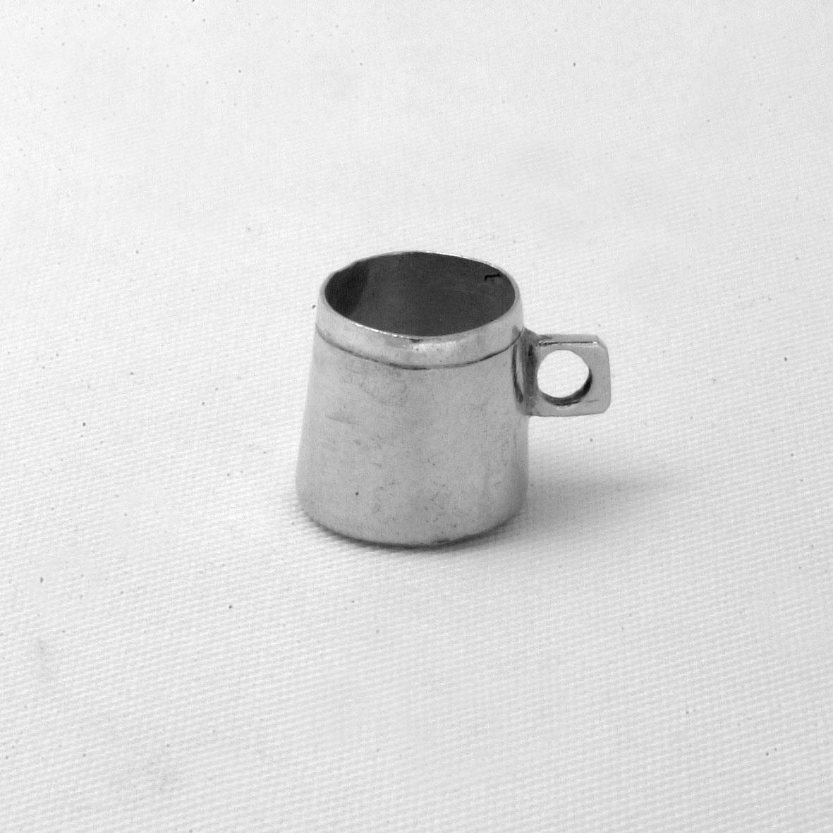 Ronde bierpul met vlakke wand inlopend naar boven, ringversiering langs bovenrand, vierkant doorboord aangezet oor.- Trefwoorden