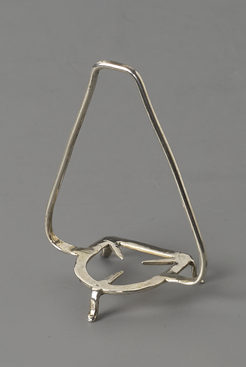 Treeft met hangbeugel en een hoefijzervormige ring op drie poten.