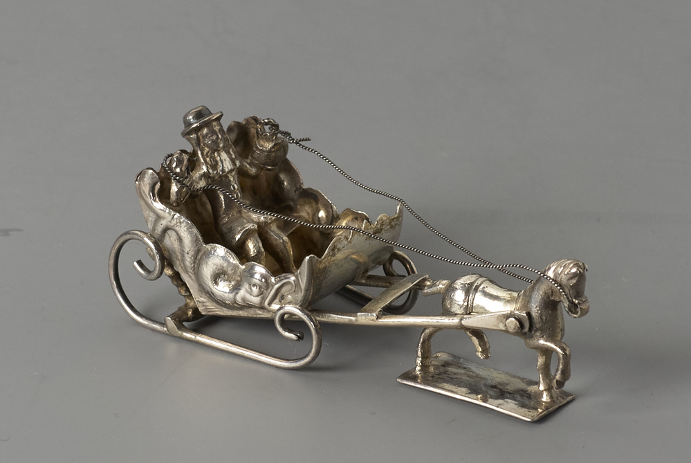 Slede, aan de zijkanten versierd met een dolfijn.- Trefwoorden