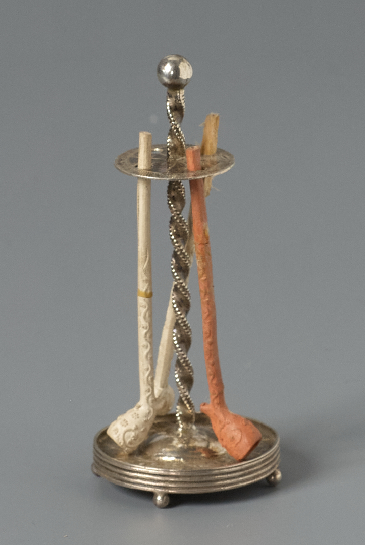 Pijpenstandaard op een ronde voet met getorste stam en schijf met vier gaten.
