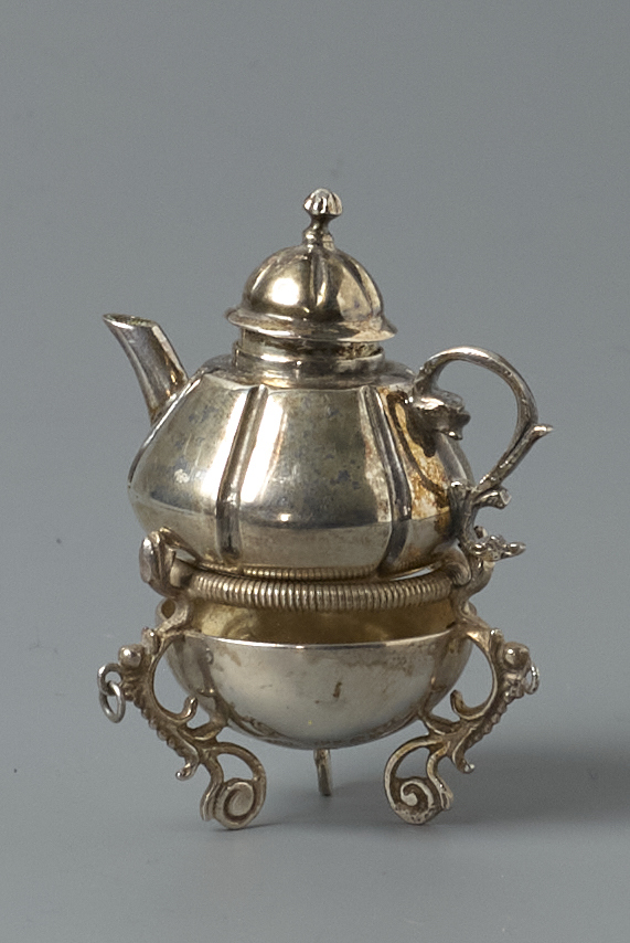 gehalteteken onderkant pot, onderkant komfoor: Een klimmende leeuw in een schild. Met cijfer 1. 1814-1853, 1e gehalte