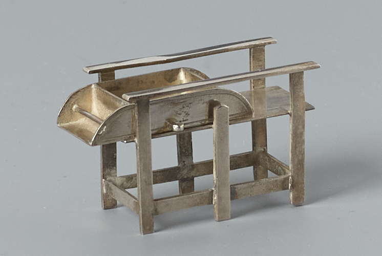 gehalteteken zijkant middenpoot tafel onderin, zijkant punt trekbak: Zwaardje, geribbeld handvat, klein zilverwerk, beide gehalten, 1906-1953