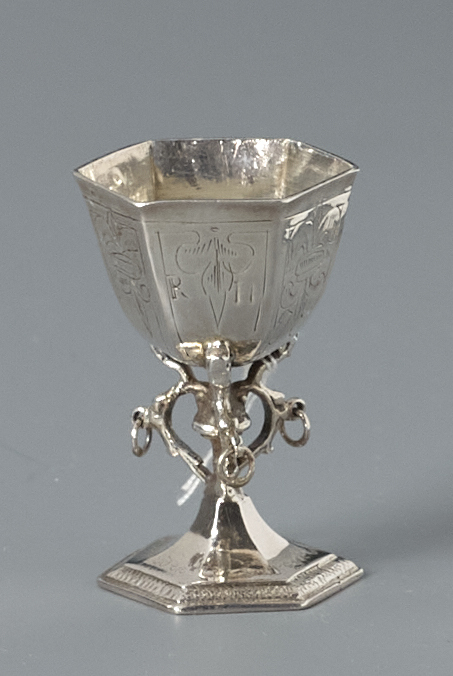 Beker op een zeskantige voet, versierd met renaissance-motieven.