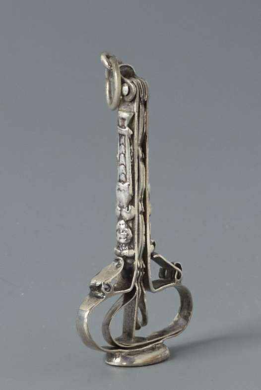 Sleutelvormige pijpengarnituur met drie wroeters en een stopper.- Trefwoorden