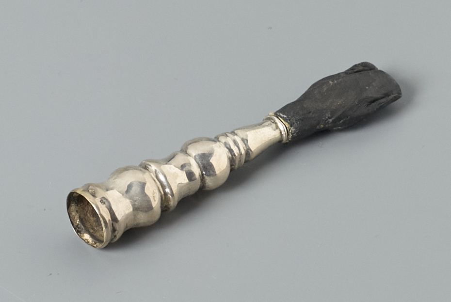 sigarenpijpje, 1921 - 1951 Schoonhoven zilver hoogte: 1.23 cm; breedte: 1.35 cm; diepte: 7.73 cm; gewicht: 6.05 gr; gehalteteken rand pijpje: Zwaardje, geribbeld handvat