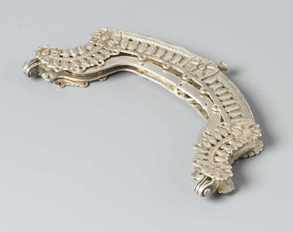 H-vormige tasbeugel, met dubbele binnenbeugel, versierd met bloemmotieven