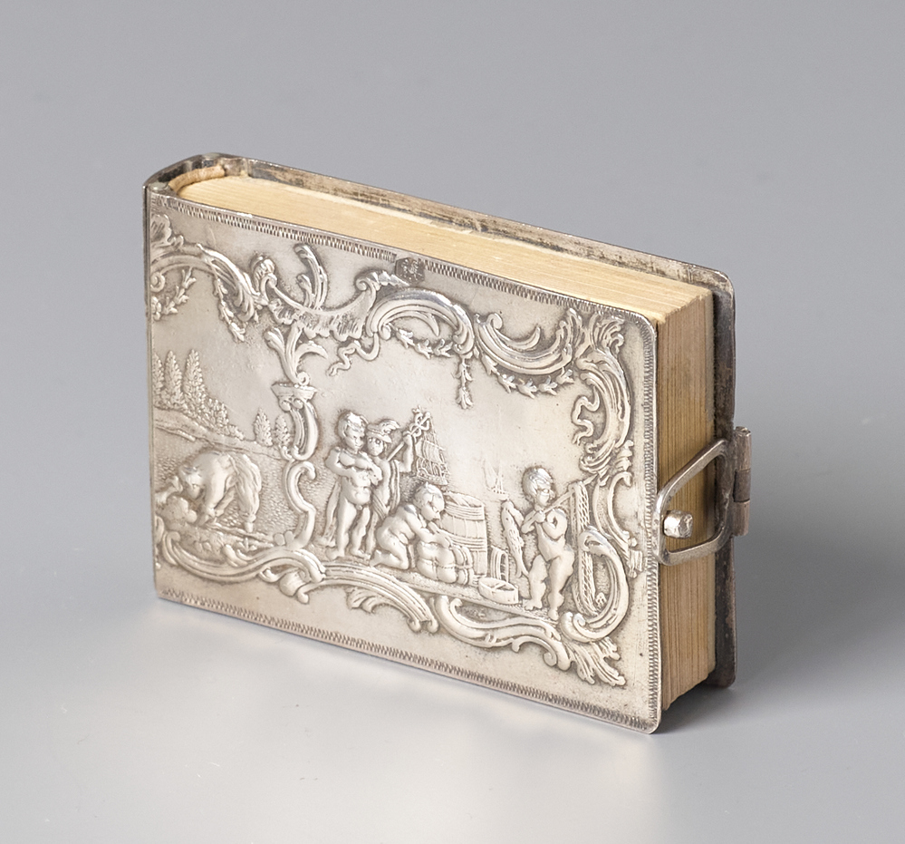 Smal boekje met zilveren rug en buitenblad met sluiting- Trefwoorden