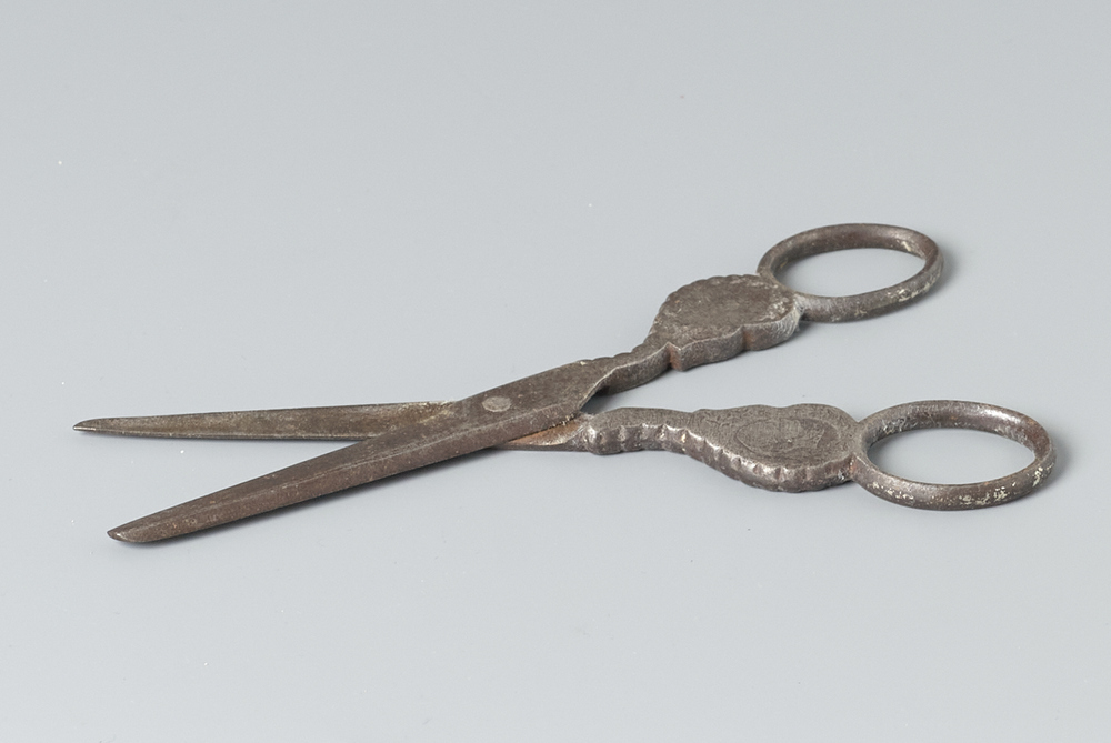 Schaar geheel uit ijzer ( gesmeed tot staal) de armen versierd met medaillon en lauwerenkrans- Trefwoorden
