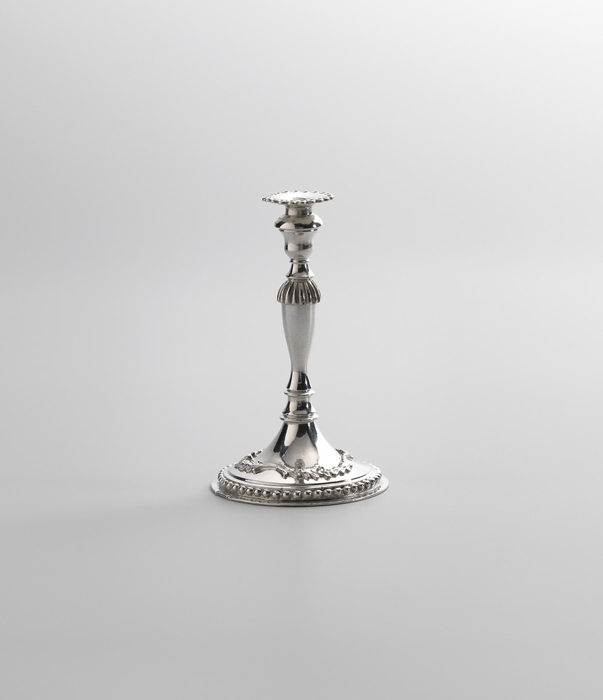 Hoewel kaarsen duurder waren dan lampolie, hadden zelfs arme huishoudens vaak wel een paar eenvoudige kandelaars. Deze waren vervaardigd van aardewerk, tin, koper of brons. In de achttiende eeuw bezaten welgestelde families kandelaars van zilver, meestal in paren of een veelvoud ervan voor gebruik op tafel, buffet of schoorsteenmantel. De vormgeving volgde de opeenvolgende modestijlen van die tijd op de voet. Deze miniatuurkandelaars vertonen de strakke, neoclassicistische stijlkenmerken die omstreeks 1780 geliefd waren. ( Bert Vreeken)