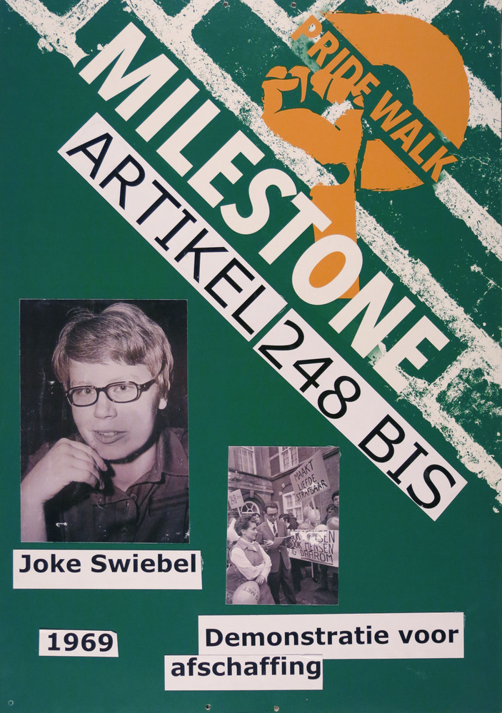 - Pride Walk-bord, Artikel 248 BIS, Joke Swiebel, Demonstratie voor afschaffing, 1969, 2019