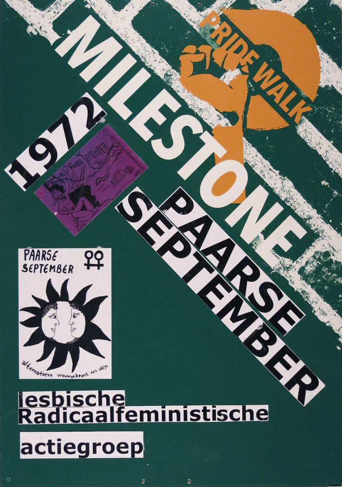 - Pride Walk-bord, Paarse September, Lesbische radicaal-feministische actiegroep, 1972, 2019