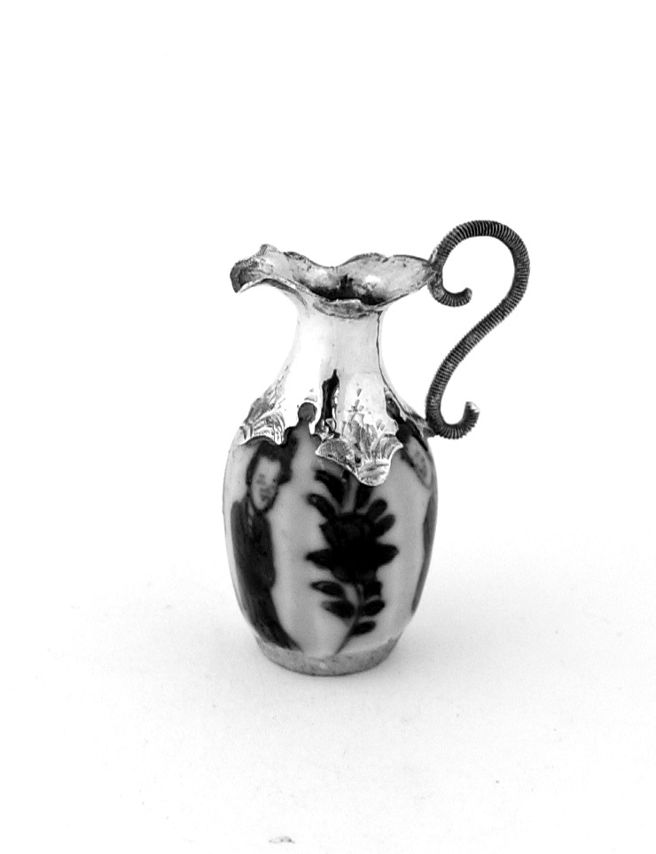 Porseleinen kan met zilverbeslag.- Trefwoorden