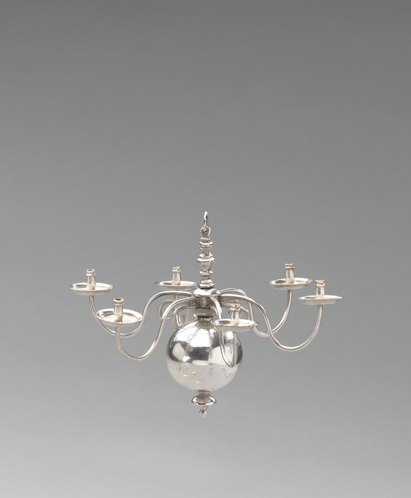 In de zeventiende en achttiende eeuw kwamen koperen kaarsenkronen alleen in kerken en bij beter gesitueerde families voor. De gladde bol en de stam dienden om het licht te reflecteren. Zo maakten onze voorouders gebruik van een optimale lichtopbrengst. Grote kronen van zilver zijn betrekkelijk zeldzaam. De zilveren miniatuur kroon van Van Geffen heeft één rij van zes kaarsenhouders. Er bestaan ook miniatuur kaarsenkronen met een dubbele rij kaarsenhouders. ( Bert Vreeken)