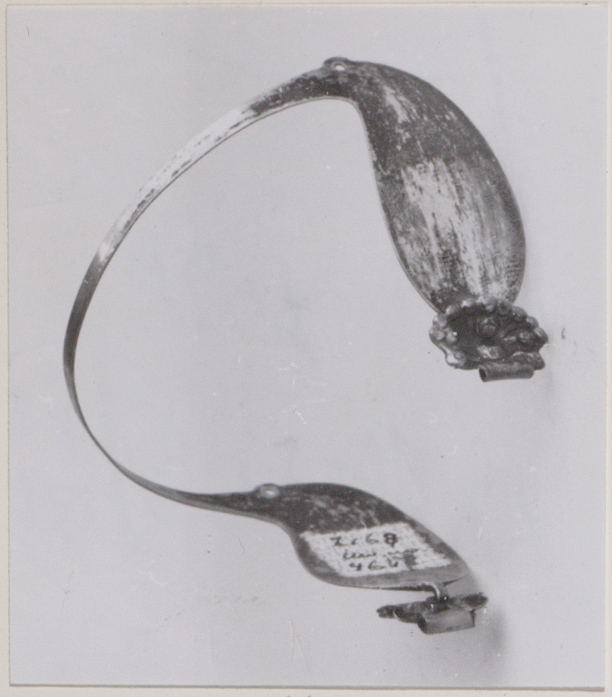 Oorijzer met twee schepvormige gespjes.- Trefwoorden