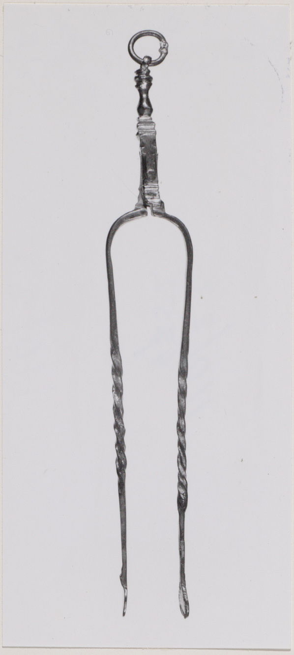 Tang met twee getorste benen, korte greep met ophangring.- Trefwoorden