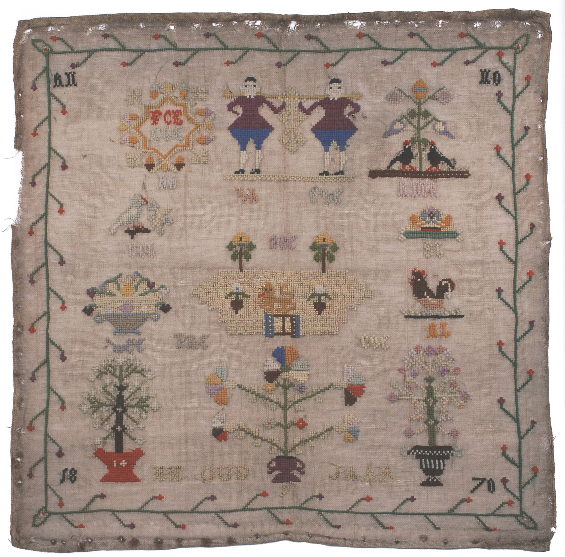 opschrift tweede rij, boven Hollandse Tuin: FCE: Frederik Casper Evers, broer van borduurster