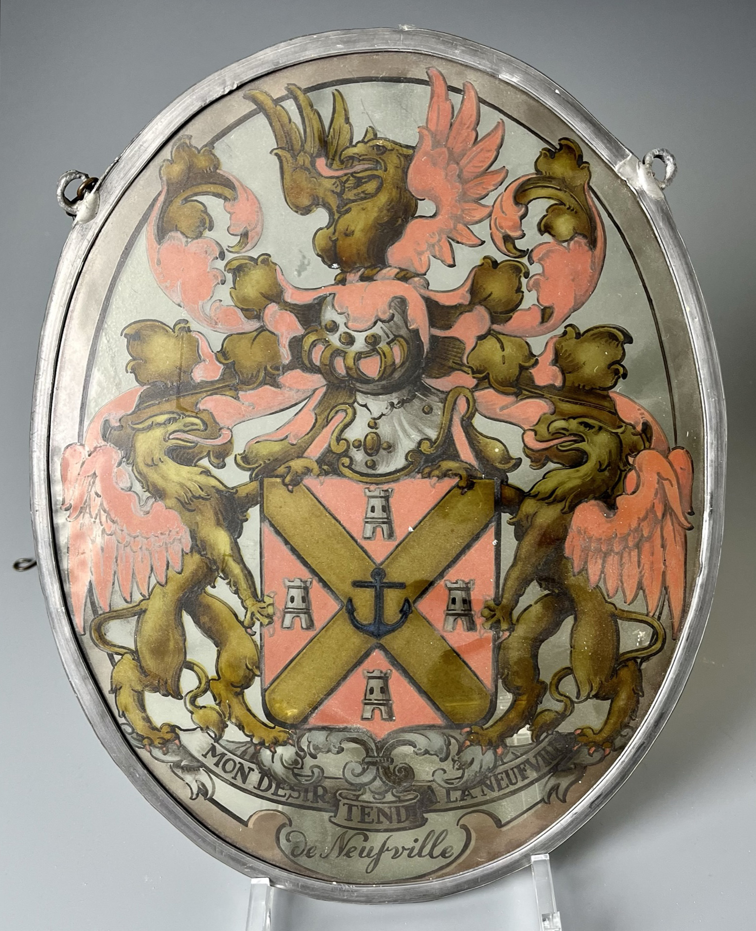 - Wapen van de Neufville, geschilderd op glas-in-lood