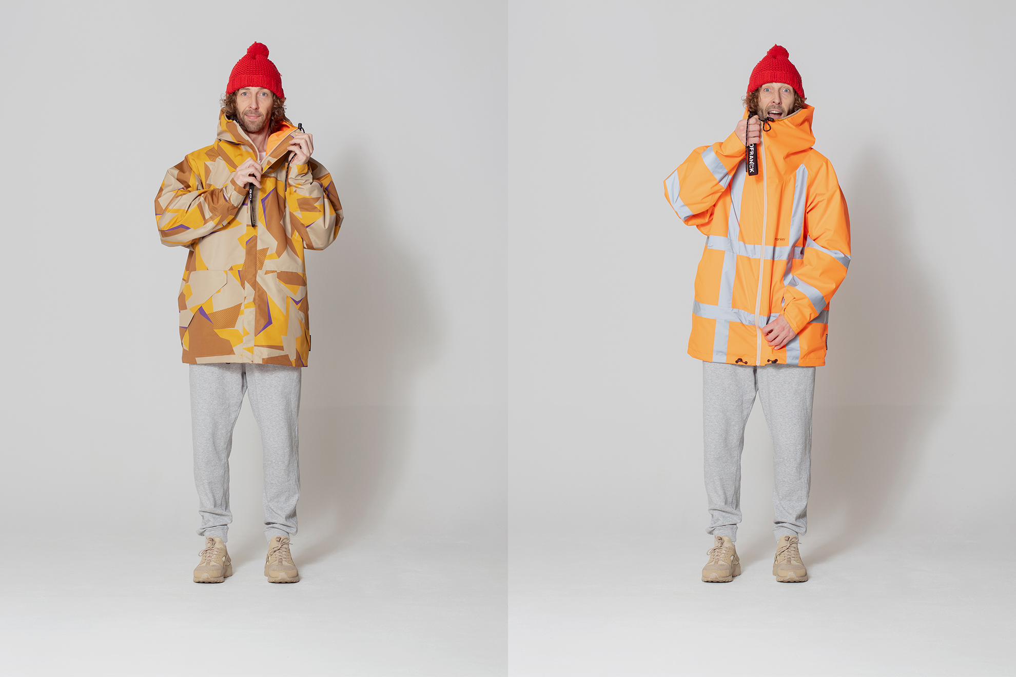 Bij het aanbrengen van zijn street art-interventies in de openbare ruimte doet Frank de Ruwe, a.k.a. Streetart Frankey, zich vaak voor als iemand van de gemeente. Hij bakent zijn werkterrein af met oranje verkeerspylonen en trekt een oranje jas aan met reflecterende strepen. Een samenwerking met het Amsterdamse bedrijf Go Frank (in sustainable and fair fashion) leidde in 2019 tot deze omkeerbare jas, met camouflage print aan de ene en oranje stof met reflectiestrepen aan de andere kant.