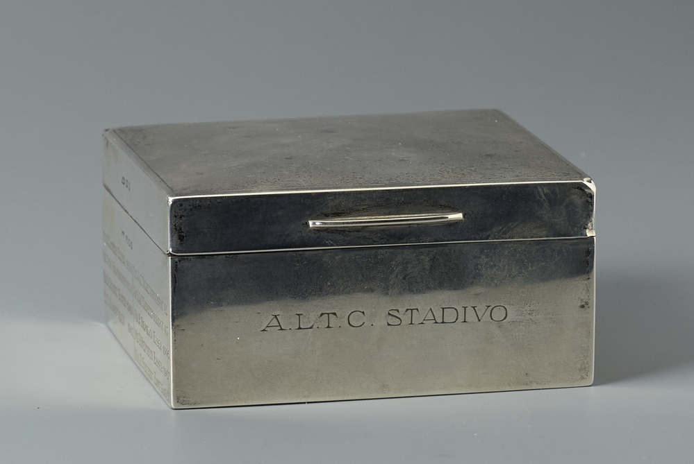tekst linkerzijde: MR.R.SEMEYN ESSER 1938/ MR.TH.W. BRANBERGEN 1939/ MR.R.SEMEYN ESSER 1940/ E.C. KOOYMAN 1941 | MR.J.A.C. BIERENBROODSPOT '42/ MR.J.A.C. BIERENBROODSPOT '43/ MR.R.SEMEYN ESSER 1946/ MR.R.SEMEYN ESSER 1947/ MR.R.SEMEYN ESSER 1948.: Winnaars en het jaar van hun winst van de wisseltrofee.