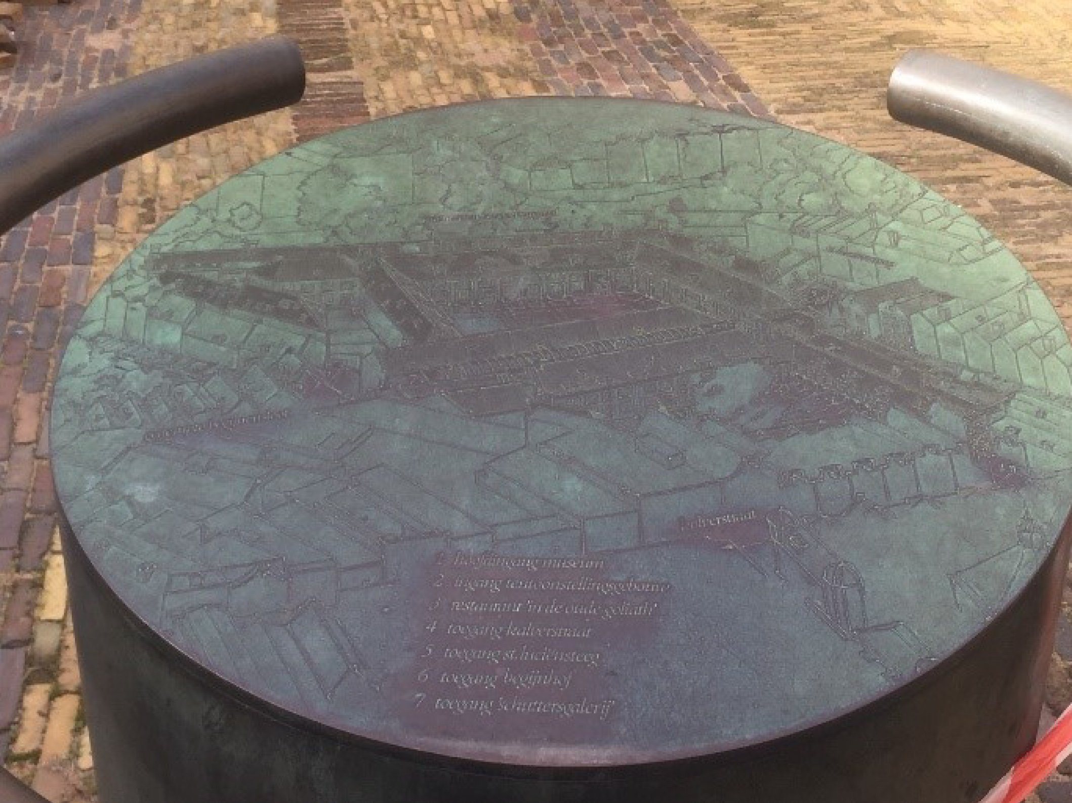 De afgebeelde plattegrond zal niet meer kloppen na de nieuwe verbouwing en verwarrend kunnen werken. De oriëntatiesculptuur is daarom al verwijderd van de binnenplaats, om vervolgens te worden geconserveerd en bewaard als tijdsdocument voor de stadscollectie.