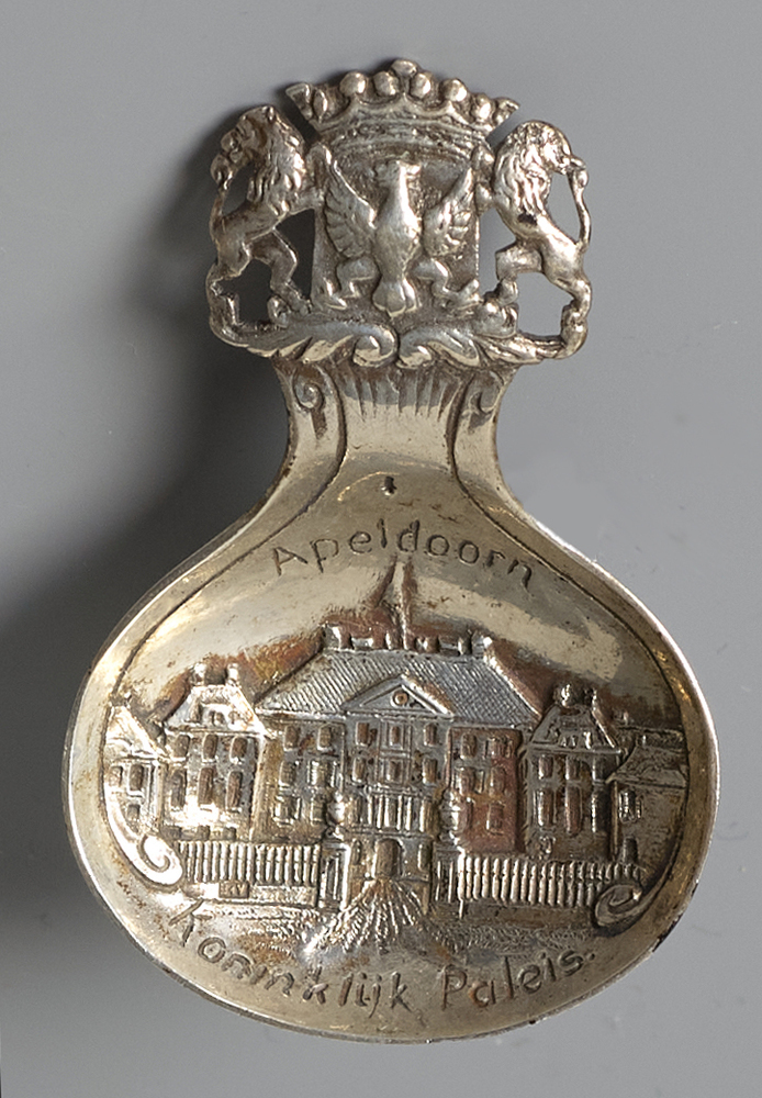 Theeschep met een voorstelling van Paleis het Loo, Apeldoorn.- Trefwoorden