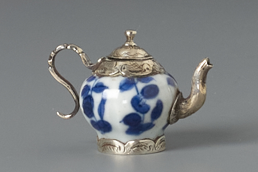 Trekpot vervaardigd van een porseleinen vaas en zilveren monturen- Trefwoorden