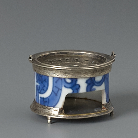 Stoof gemaakt van een porseleinen wand en zilveren monturen en hengsel.- Trefwoorden