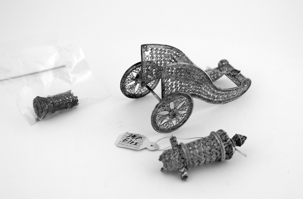 Affuit en kanon, geheel uit filigrain.- Trefwoorden