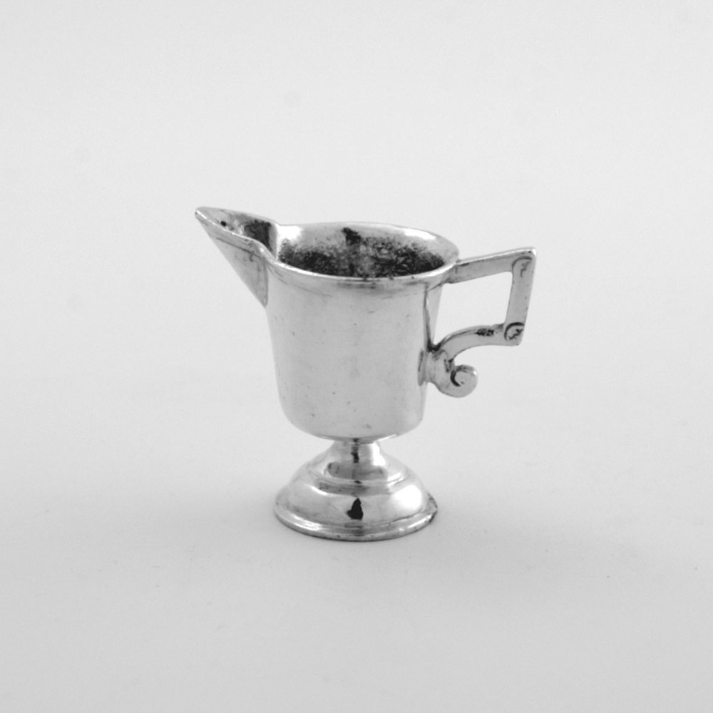 Op ronde gewelfde en ingesnoerde voet, waarop de kan met lichtgewelfde bodem, vlakke wand licht conisch waaruit een schenktuit komt; licht overkragige rand waaronder een gegraveerde lijn en een aangezet amfoorvormig oor.