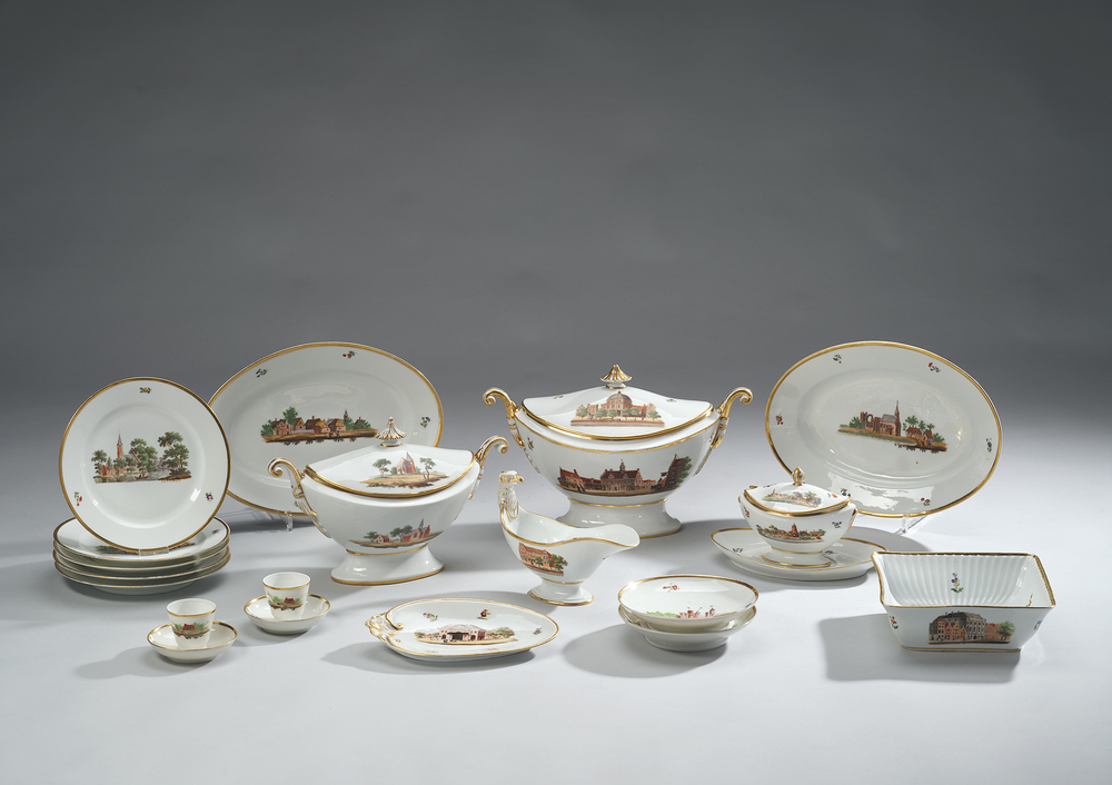 Twee eivormige schaaltjes met afbeeldingen van historische gebouwen, resp. Regulierswaag (Boterwaag) en Sint Antoniswaag (Waag).- Trefwoorden