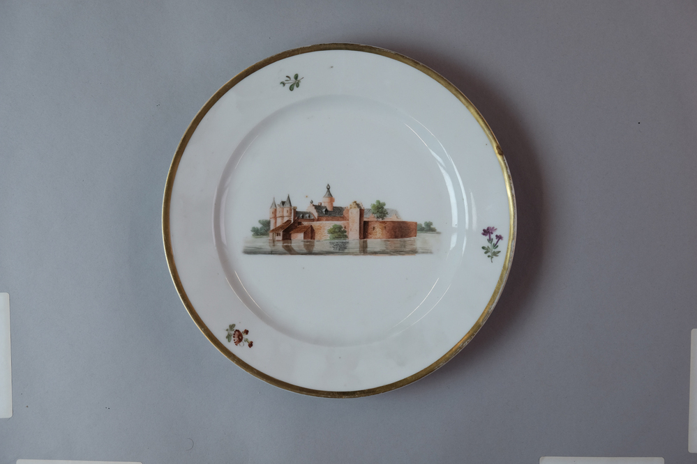 Bord met afbeelding van een kasteel bij Heemskerk [Slot Assumburg?].- Trefwoorden