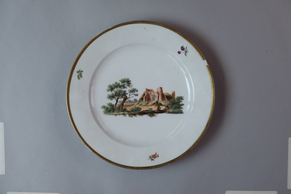 Bord met afbeelding van Huis ter Kleef te Haarlem.- Trefwoorden