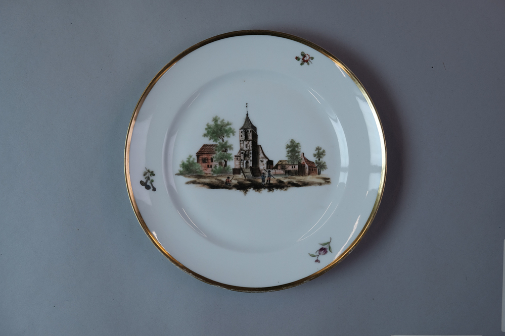 Bord met een afbeelding van een historisch dorpsgezicht of gebouw.- Trefwoorden