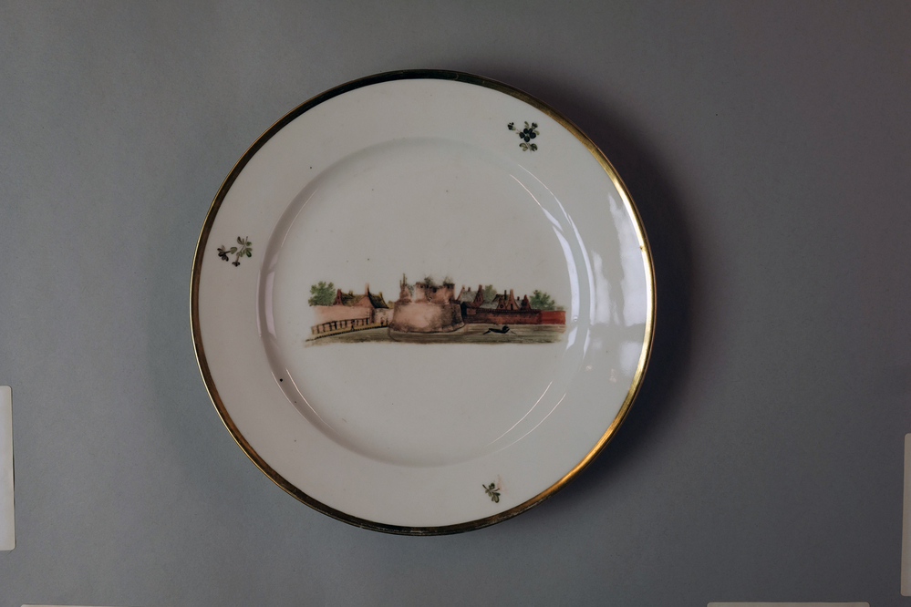 Bord met een afbeelding van een historisch dorpsgezicht of gebouw.- Trefwoorden