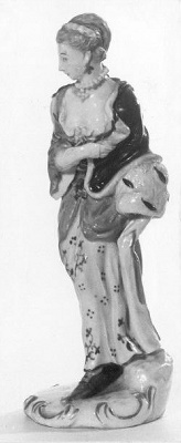 Figuur van een dame beschilderd op het glazuur met emaillekeuren, met hermelijnen mof- Trefwoorden